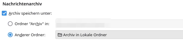 Die Lösung ist ganz einfach, legen Sie das Archiv unter „Lokaler Ordner“ auf die eigene Festplatte ab. Damit wird der Speicherplatz beim E-Mail-Provider nur noch für den relevanten Postverkehr genutzt und dieser läuft auch flüssiger, da der E-Mail-Verwaltungsaufwand reduziert ist.