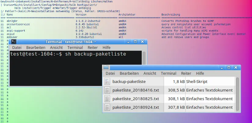 Dieses Script listet alle installierten Pakete mit Name, Version, Architektur und Beschreibung auf und speichert diese in eine Datei mit aktuellem Datum im Dateinamen und Dateierweiterung für Plaintext in "/home/benutzer/".